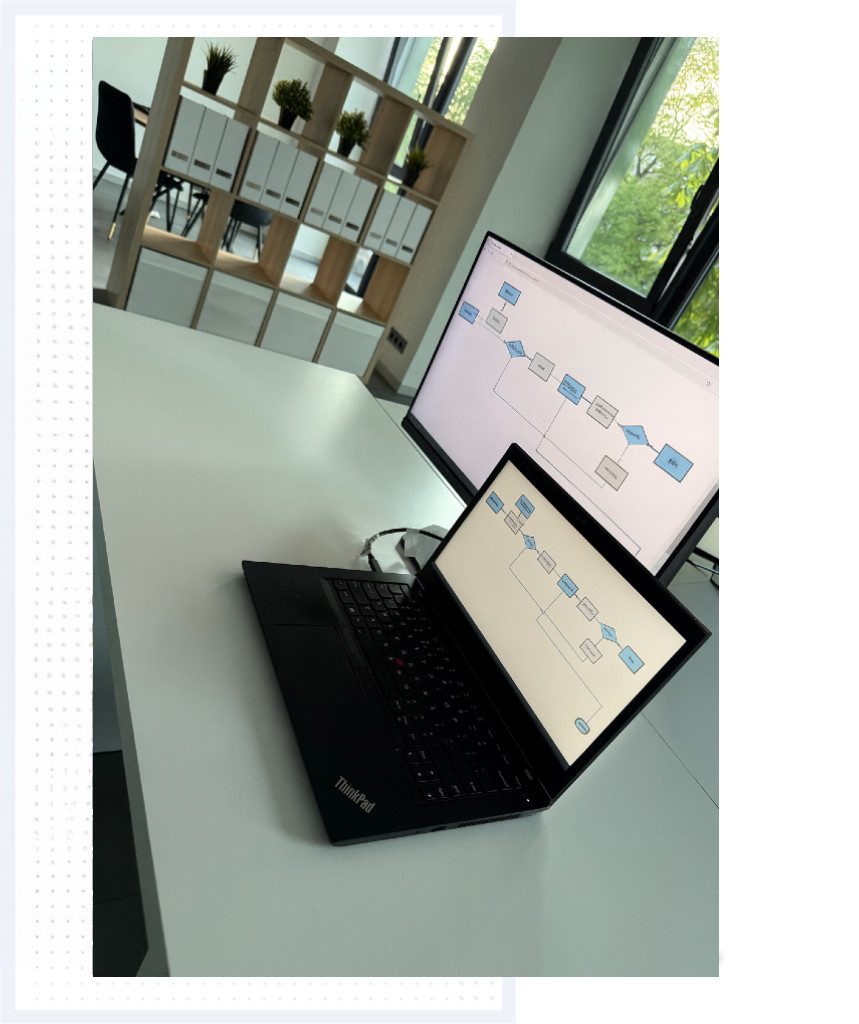 Mūsų procesų automatizavimo paslauga sujungia tris dalykus: išmanų procesų modeliavimą, dirbtinio intelekto sprendimus ir fizinių robotų integraciją. Analizuojame, kaip jūsų komanda dirba šiandien, ir kuriame sprendimus, kurie „dirba fone“ – nuo dokumentų ir užklausų srautų iki realių robotų judesių gamyboje ar sandėlyje.